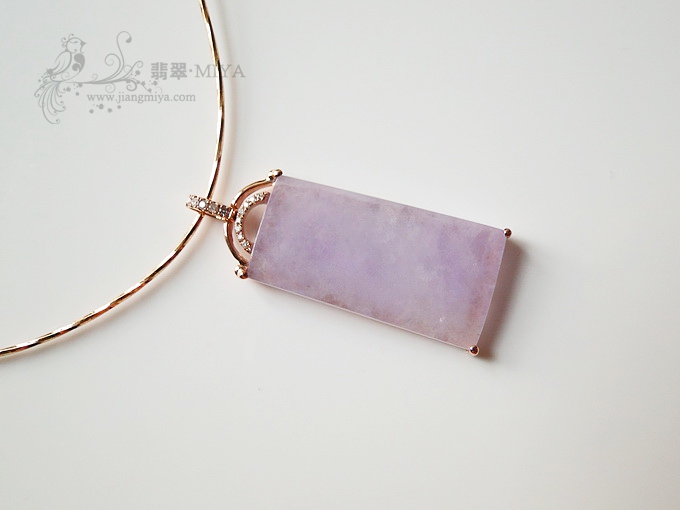 18K玫瑰金钻石镶嵌冰种起荧翡翠叶子挂坠