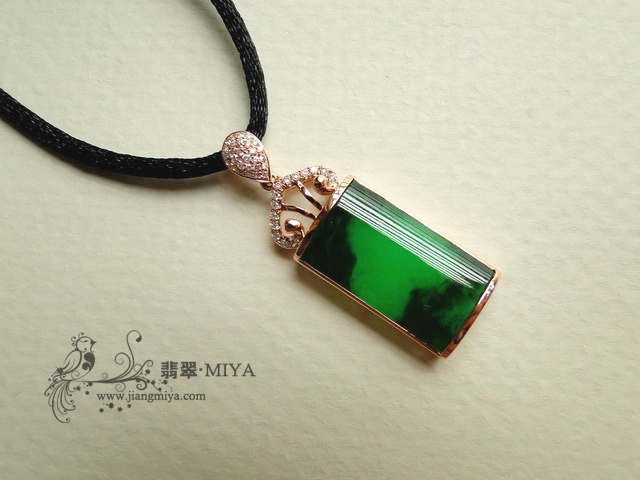 18K玫瑰金钻石镶嵌老花青薄片小挂坠