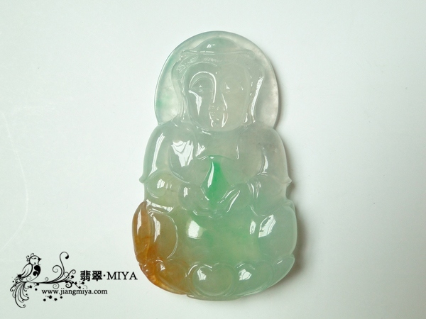 收藏级别罕见冰种三彩俏色翡翠大观音