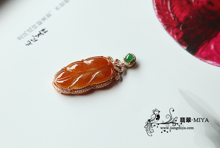 18k玫瑰金钻石镶嵌高翠绿色方片吊坠2